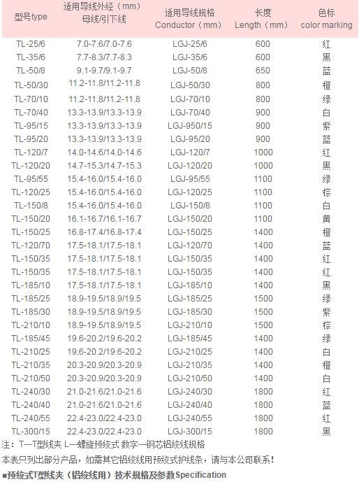 ■預絞式T型線夾(鋼芯鋁絞線用)技術規格及參數Specification 河間市天恒電力器材有限公司
