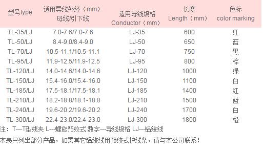 同類產品其他廠家代號 : 預絞式T型線夾
