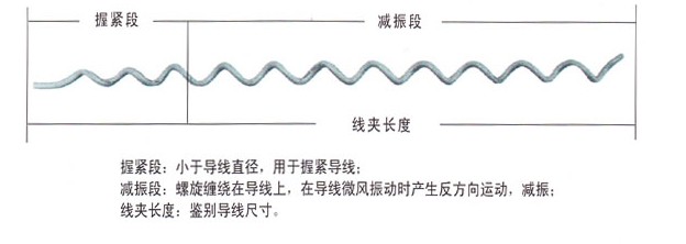 ◆螺旋形防振鞭由一段較短的握緊段和一段較長的減振段組成。