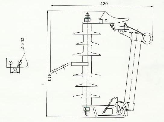 熔斷器是由基座和消弧裝置兩大部分組成,滅弧管下端裝有可能轉(zhuǎn)動的彈簧支架,始終使熔絲處于緊張狀態(tài),以保證滅弧管在合閘位置的自鎖,線路與變壓器過載或短路中,熔絲熔斷,熔絲迅速從滅弧管中抽出,滅弧管設(shè)計為逐級排氣式解決在同一熔斷器上開斷大小電流的矛盾。