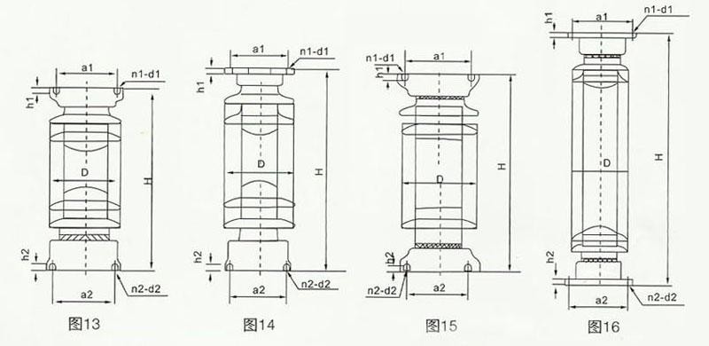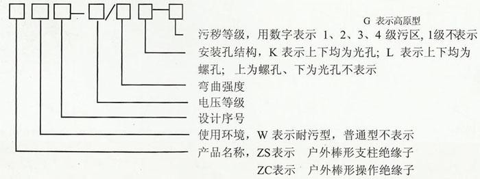 表示戶外棒形支柱絕緣子、耐污性、設計序號為2、220kv電壓等級、16kN彎曲強度、上下法蘭均為光孔、用于3級污區。