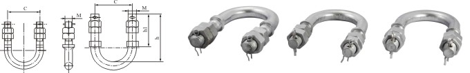 7)、固定金具,亦稱電廠金具或大電流母線金具。這種金具用于配電裝置中的各種硬母線或軟母線與支柱絕緣子的固定、連接等,大部分固定金具不作為導電體,僅起固定、支持和懸吊的作用。但由于這些金具是用于大電流,故所有元件均應無磁滯損失。
