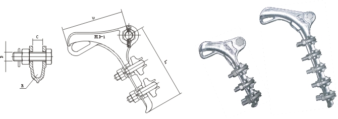 耐張線夾用來將導線或避雷線固定在非直線桿塔耐張絕緣子串,起錨作用,亦用來固定拉線桿塔的拉線。