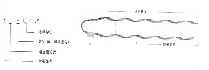 N------耐張線夾 L----螺旋預(yù)絞式 -數(shù)字(適用導(dǎo)線型號) □絕緣導(dǎo)線 / JY