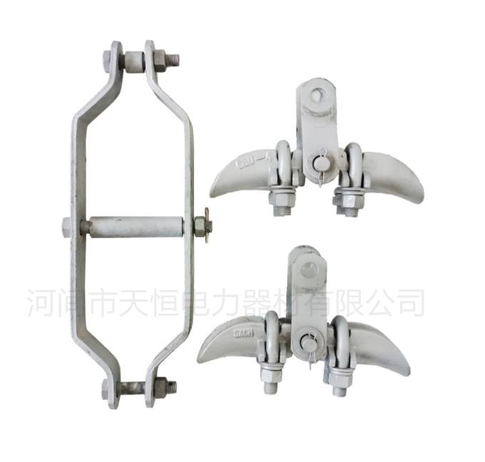 懸垂線夾常有的定型產品,現在保留了U型螺栓式樣(通常叫船型線夾),它是由掛架U型螺栓,可鍛鑄鐵制造的線夾船體、壓板組成。另一種就是預絞式懸垂線夾。懸垂線夾用于將導線固定在直線桿塔的絕緣子串上,或將避雷線懸掛在直線桿塔上,亦可用于換位桿塔上支持換位導線以及耐張轉角桿塔跳線的固定。